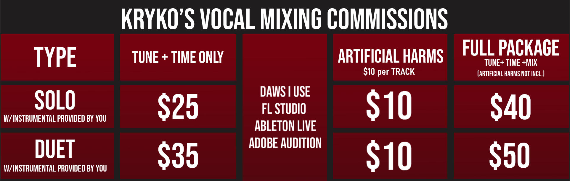 - People who want help with mixing their covers/instrumentals for youtube/facebook etc.- Just people looking to do casual projects in general. Nothing super professional.